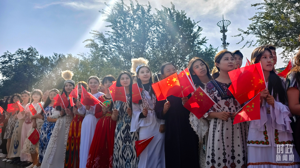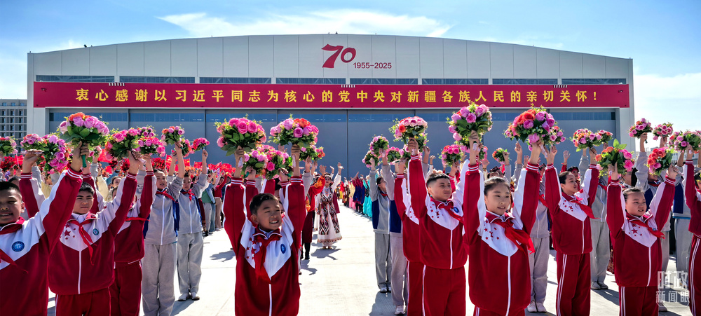 金秋时节,晴空万里。新疆各族群众热情迎接习和中央代表团的到来。